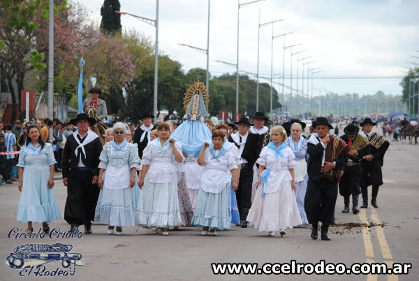 Luego de que los Capataces Generales pidieran la autorización al Sr. Intendente para dar inició, y obtener dicha aprobación, comenzó el desfile, encabezado por los Círculos Criollos Martín Fierro y El Rodeo, seguidos por las Instituciones que pasaron frente al palco y la Basílica para saludar, agradecer y pedir a la Virgen Gaucha.