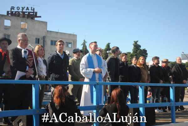 Por la mañana el Rector de la Basílica, Pbro. Lucas García, bendijo a los peregrinos y realizó una invocación religiosa desde el palco sobre la Avenida de la Virgen, y el Intendente Municipal Leonardo Boto dió la bienvenida a los participantes y entregó unos presentes a las Instituciones organizadoras.