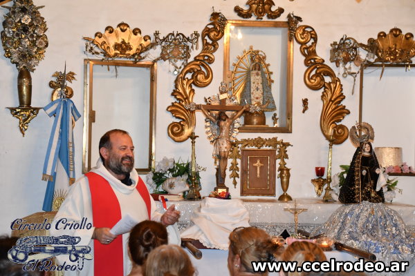 se realizó dentro de la Capilla Criolla por el mal clima, frente a las imágenes del Cristo Crucificado y la Virgen
